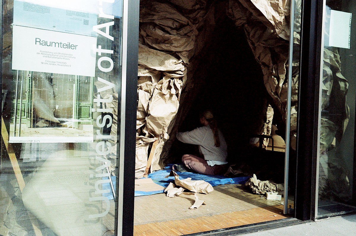 Zum Ausstellungs- und Tagungsformat Lets talk about...sharing befassten sich Studierende in einer Intensivwoche mit der Idee des Raumteilers. Eine Auseinandersetzung mit Skulptur bedeutet immer auch eine Auseinandersetzung mit Raum. Im Zusammenspiel von Skulptur und Raum eröffnen sich grundlegende Fragen des dreidimensionalen Gestaltens: Wie verändert eine Skulptur den leeren Raum? Welchen Dialog gehen Skulptur und Raum ein? Wieviel Raum bleibt in der Skulptur übrig? Wo werden die jeweiligen Grenzen fransig? Neben den skulpturalen Aspekten werden wir auch soziale und politische Dimensionen untersuchen.